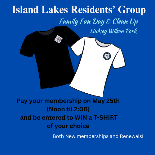 Island Lakes Residents’ Group T-shirts will be available for pre-order.